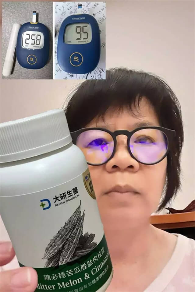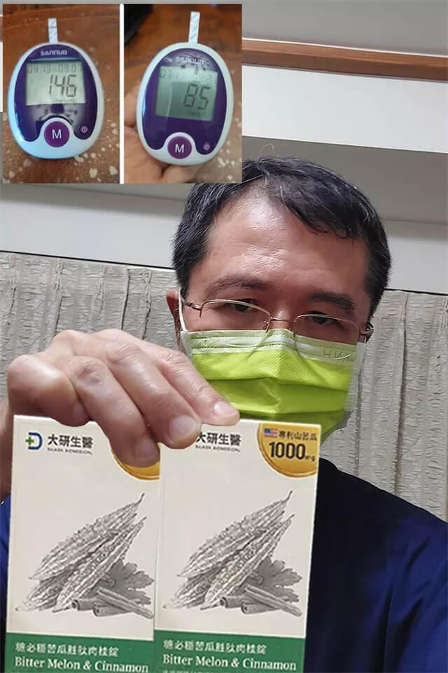 事情的事情的轉機就在去年。我的女兒帶回了一款降糖產品,說是我們台灣大研生醫研發的叫(糖必穩)苦瓜勝肽肉桂錠,據說現在很多辦公室工作人員、大學教授、企業領導人等都在吃,效果反應特別好。