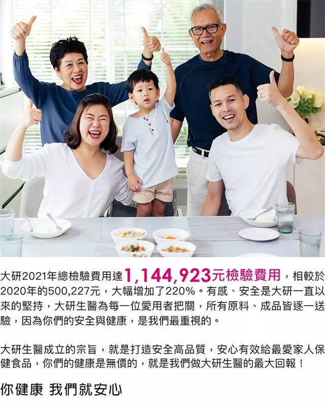 大研生醫研究團隊來自於美國、日本、台灣等各生技醫學領域專精的博士與醫師專家,成立宗旨就是要打造讓自己與家人都安全、安心及有效之健康食品。(糖必穩)苦瓜勝肽肉桂錠就是透過團隊多位博士研究超過數千篇國際期刊論文,並與專業醫師、藥師與營養師共同研發而出,經過了多重國際嚴格安全性測試檢驗,設計出對糖尿病患者最安全有感的保健食品!