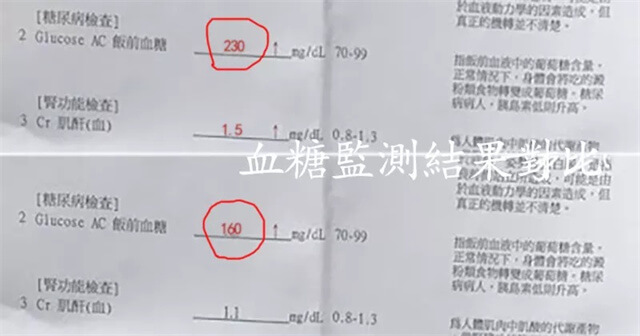 當時也沒放在心上,沒敢奢求吃好我的糖尿病,但孩子的孝心還是要接受的,所以我就按照說明書上的方法開始服用。剛開始吃了時候,沒啥特別感覺,就是感到四肢暖暖的,身體有勁了。吃了幾天之後,我發現身體狀況好多了,心不慌了,睡眠好了。還有一個明顯的變化是吃飯次數減少了,肚子裡沒有以前的飢餓感,享受到久違的安逸。測一下空腹血糖,從230mg/dL到了160mg/dL!我簡直不敢相信自己的眼睛,得糖尿病這些年,從沒有見過200mg/dL以下的數字。