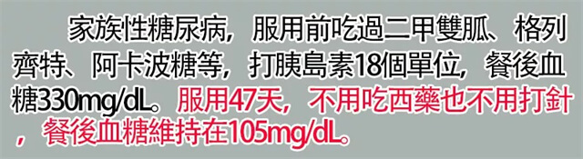 反正現在我的糖尿病是徹底好了,以前隱隱約約有些眼看不清、爛腳、腎不好的併發症現在都全消失了,真的感恩(糖必穩)苦瓜勝肽肉桂錠,拯救了我與我的家庭,終於不用讓子女再為我操心了;以上就是我成功降血糖的真實經驗分享,糖友們,我強烈建議你不要放棄治療,可以用(糖必穩)苦瓜勝肽肉桂錠試試,效果真的會驚到你!