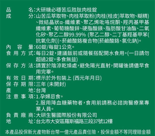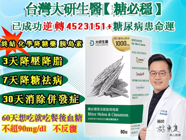 今天大研生醫(糖必穩)苦瓜勝肽肉桂錠將徹底改寫糖尿病患的命運!